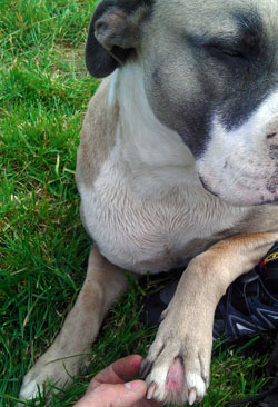 - Se lame las extremidades de forma insistente y se ven zonas inflamadas, rojas o con salida de pus (principalmente axilas y patas).